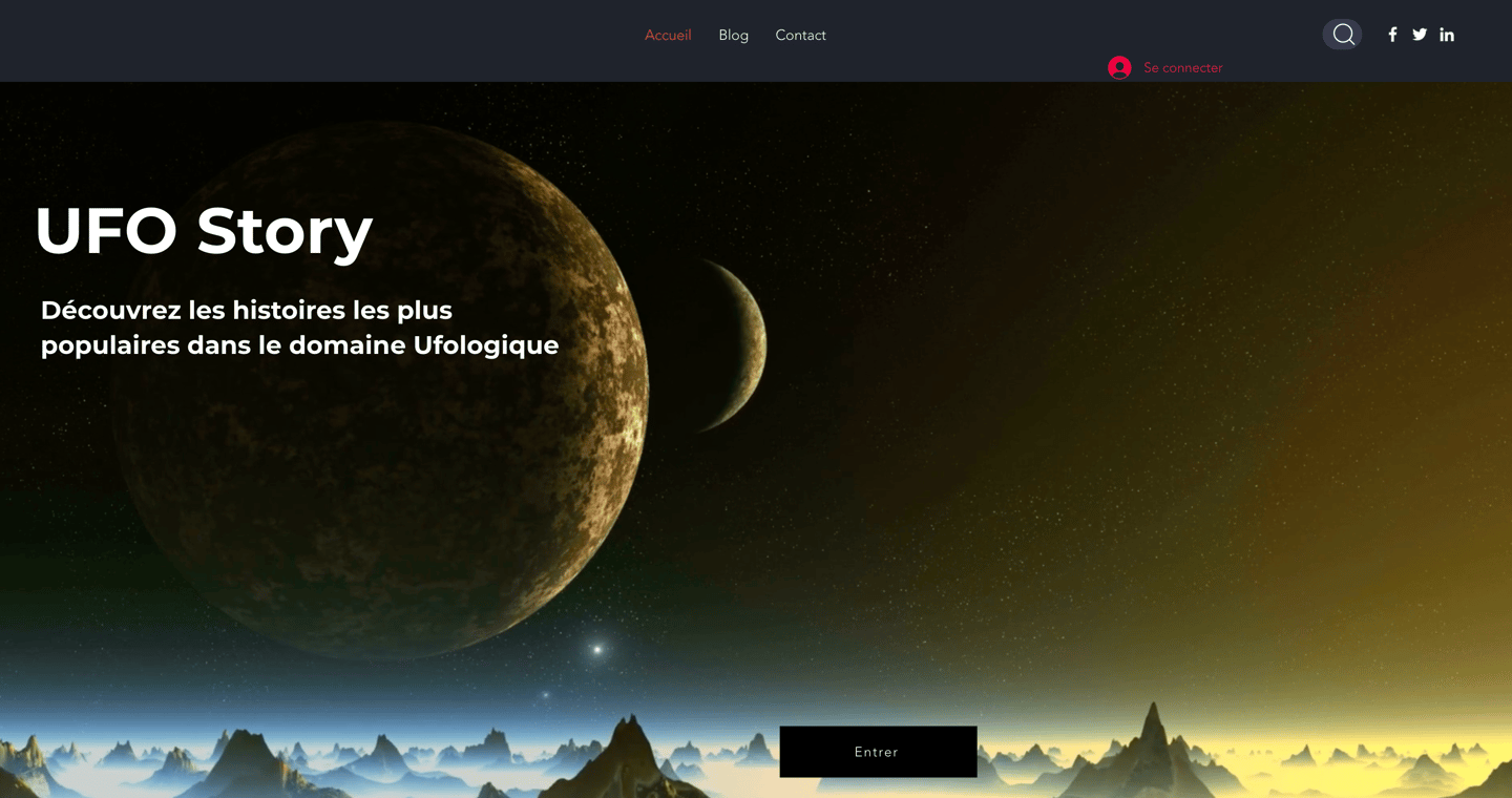 Il s'agit d'un blog que j'ai réalisé dans le cadre d'un projet personnel, alliant mon intérêt pour l'ufologie avec mes études en marketing digital.